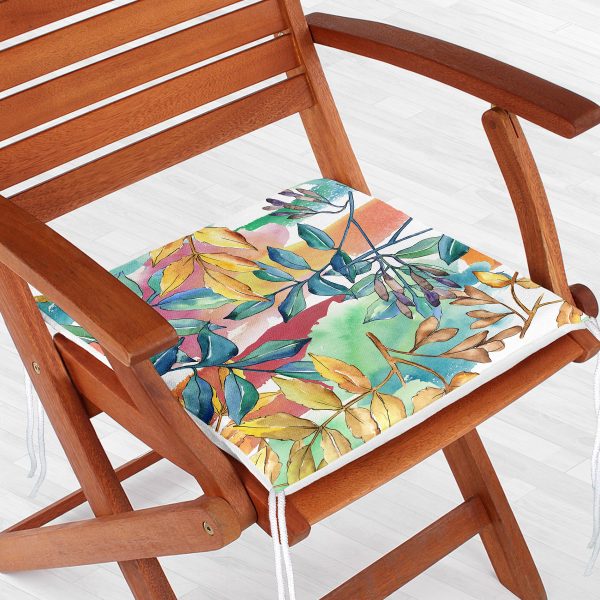 Renkli Zemin Üzerinde Yaprak Desenli Dijital Baskılı Modern Fermuarlı Sandalye Minderi