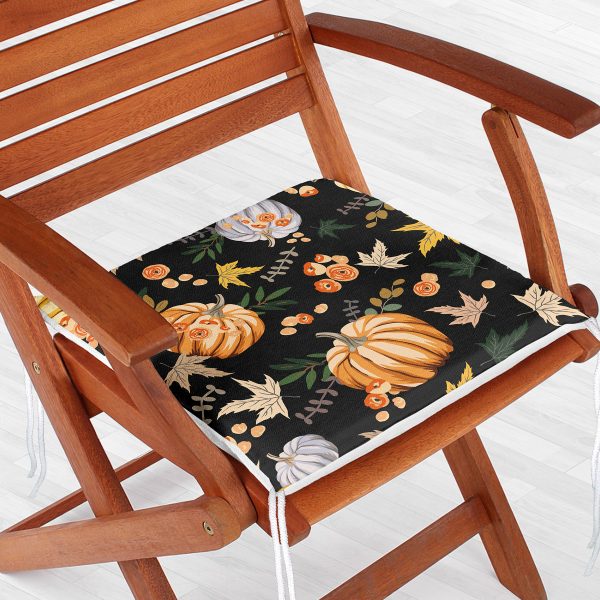 Siyah Zemin Üzerinde Bal Kabağı Desenli Dijital Baskılı Modern Fermuarlı Sandalye Minderi