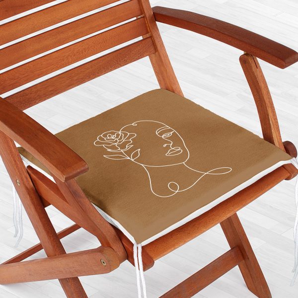 Renkli Zemin Üzerinde Onedraw Çizimli Bayan Silüeti Dijital Baskılı Modern Fermuarlı Sandalye Minderi
