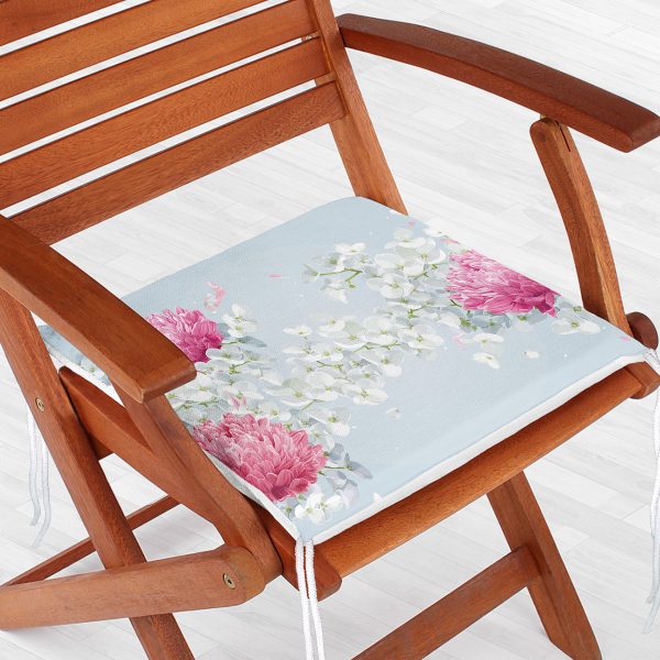 Renkli Zeminli Ortanca Çiçek Desenli Dijital Baskılı Modern Fermuarlı Sandalye Minderi