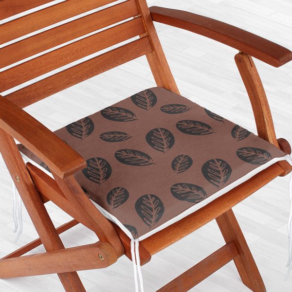 Kahve Zeminli Yaprak Tasarımlı Dijital Baskılı Fermuarlı Sandalye Minderi