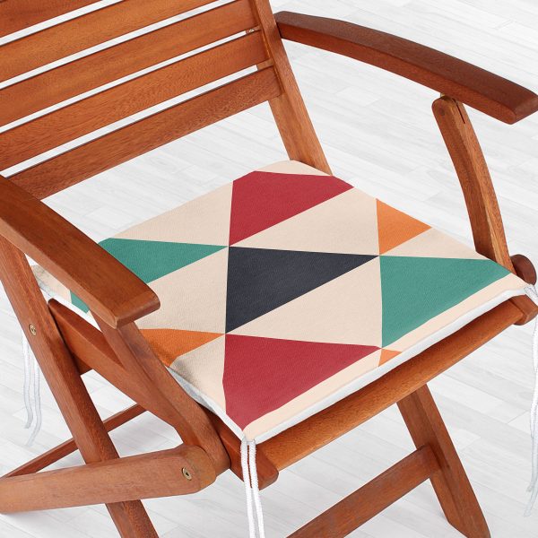 Renkli Geometrik Üçgen Motifli Dijital Baskılı Fermuarlı Sandalye Minderi