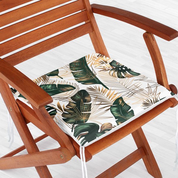 Gold Detaylı Tropik Yaprak Tasarımlı Fermuarlı Sandalye Minderi