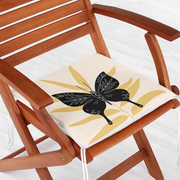 Kelebek Silüetli Özel Tasarım Dijital Baskılı Fermuarlı Sandalye Minderi
