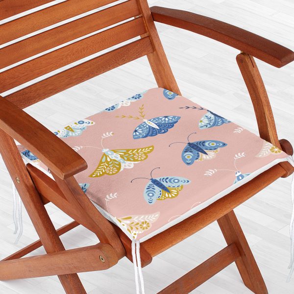 Pembe Zemin Renkli Kelebekler Özel Tasarım Dijital Baskılı Modern Fermuarlı Sandalye Minderi