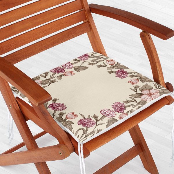 Özel Tasarım İsimli Çiçek Desenli Dijital Baskılı Fermuarlı Sandalye Minderi
