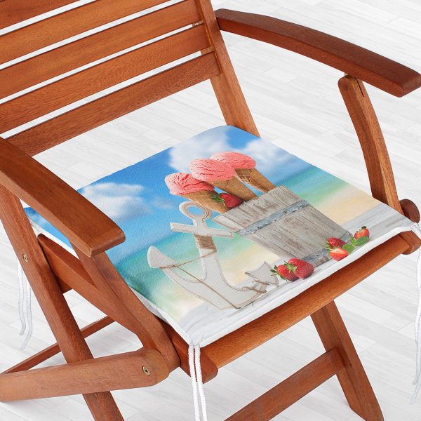 Sea and Icecream Özel Tasarımlı Dijital Baskılı Modern Fermuarlı Sandalye Minderi