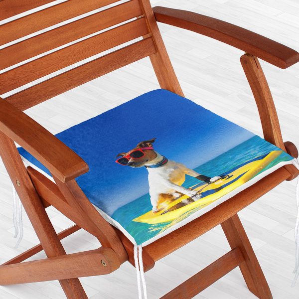 Sörf Yapan Köpek Dijital Baskılı Modern Fermuarlı Sandalye Minderi