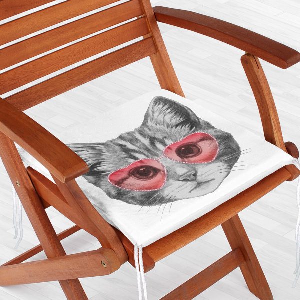 Pembe Gözlüklü Dijital Baskılı Modern Fermuarlı Sandalye Minderi