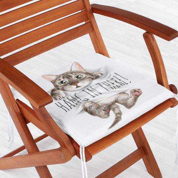 Sevimli Kedi Desenli Dijital Baskılı Modern Fermuarlı Sandalye Minderi