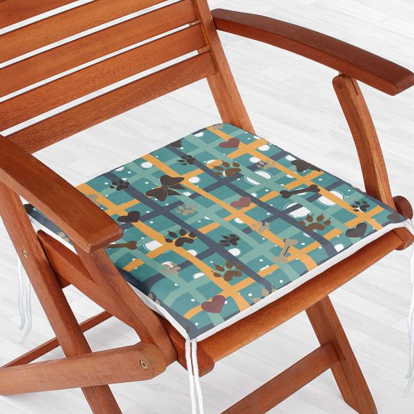 Yeşil Çizgili Zeminde Pati İzli Dijital Baskılı Modern Fermuarlı Sandalye Minderi