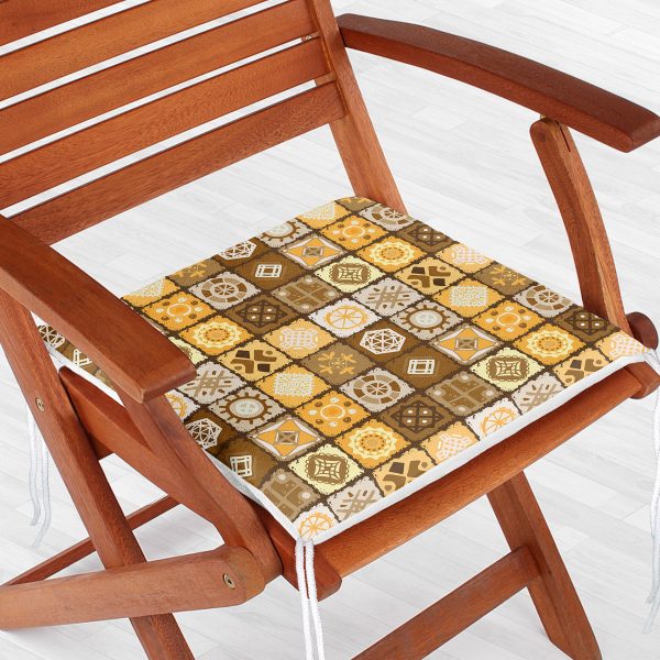 Damalı Karmaşık Şekiller Desenli Dijital Baskılı Fermuarlı Sandalye Minderi