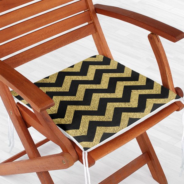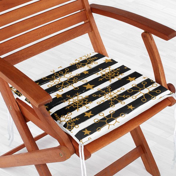 Beyaz Zeminde Siyah Dekoratif Çizgili Gold Desenli Kar tanesi Dijital Baskılı Modern Fermuarlı Sandalye Minderi