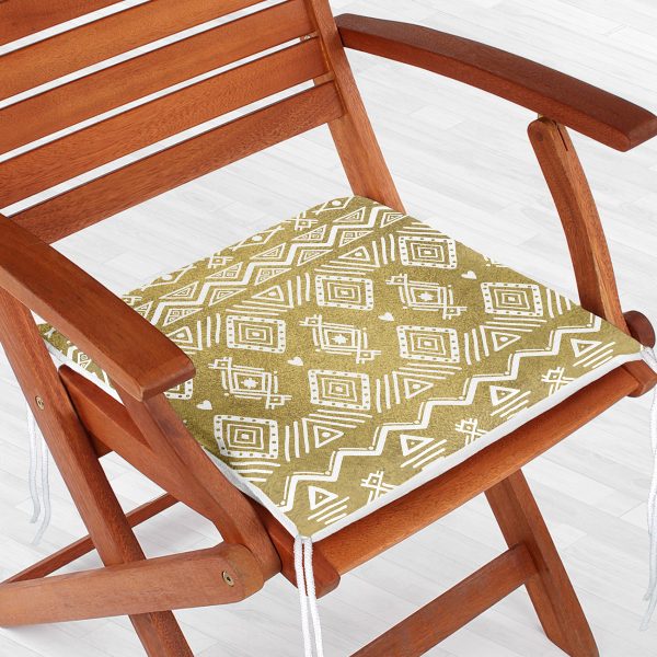 Gold Zeminde Beyaz Bohem Çizimli Dijital Baskılı Modern Fermuarlı Sandalye Minderi