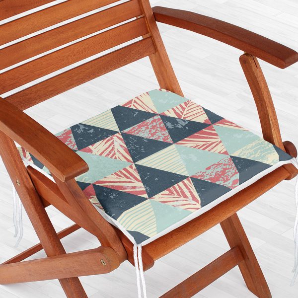 Renkli Zemin Üzerinde Üçgen Desenli Dijital Baskılı Modern Fermuarlı Sandalye Minderi
