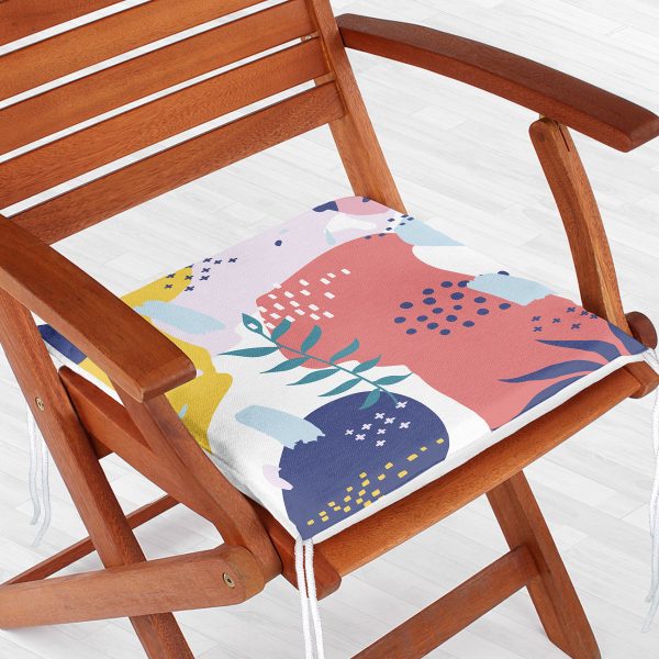 Renkli Zemin Üzerinde Beyaz Çiçek Desenli Dijital Baskılı Modern Fermuarlı Sandalye Minderi