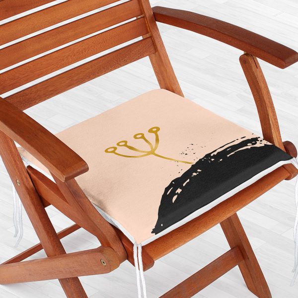 Pastel Zemin Üzerinde Gold Detaylı Yaprak Desenli Dijital Baskılı Modern Fermuarlı Sandalye Minderi