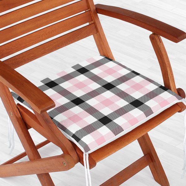 Beyaz Zemin Üzerinde Siyah Ekose Desenli Dijital Baskılı Modern Fermuarlı Sandalye Minderi