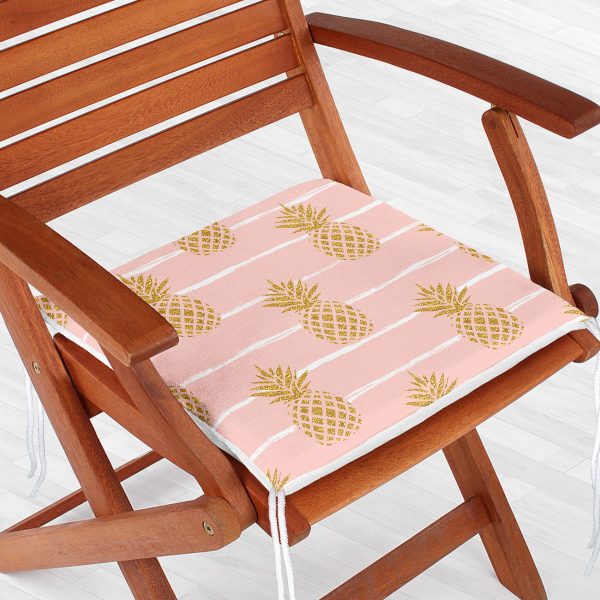 Pastel Zemin Üzerinde Gold Renkli Ananas Desenli Dijital Baskılı Modern Fermuarlı Sandalye Minderi