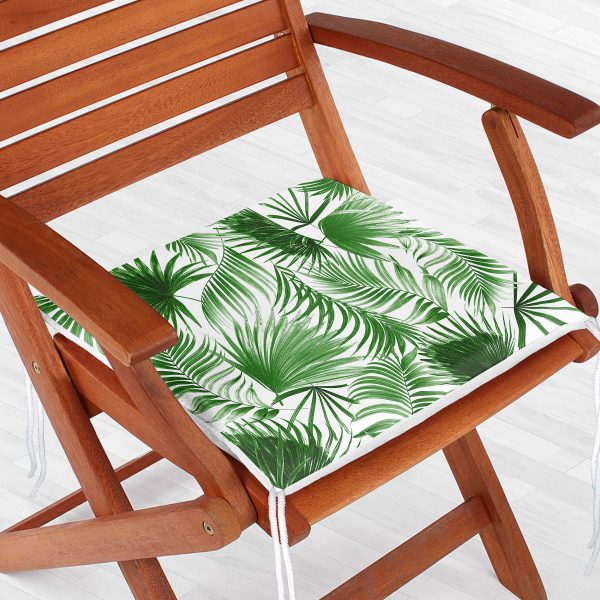 Beyaz Zemin Üzerinde Yeşil Yaprak Desenli Dijital Baskılı Modern Fermuarlı Sandalye Minderi