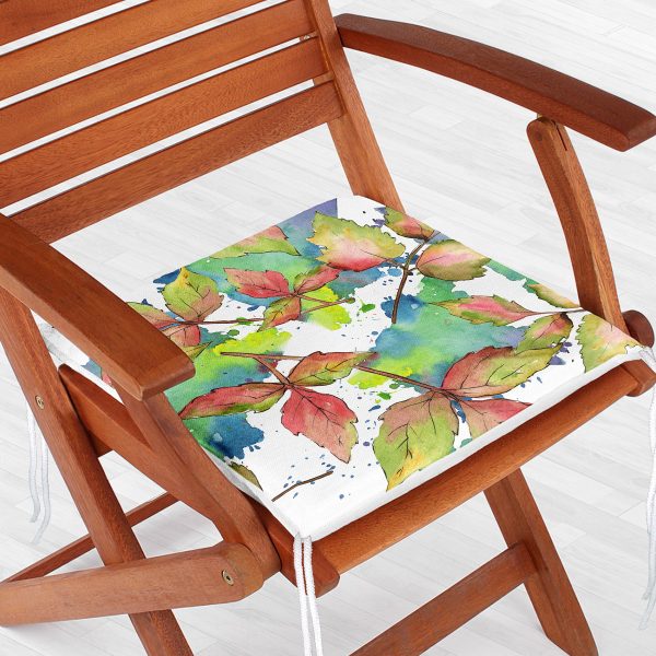Beyaz Zemin Üzerinde Renkli Yaprak Desenli Dijital Baskılı Modern Fermuarlı Sandalye Minderi