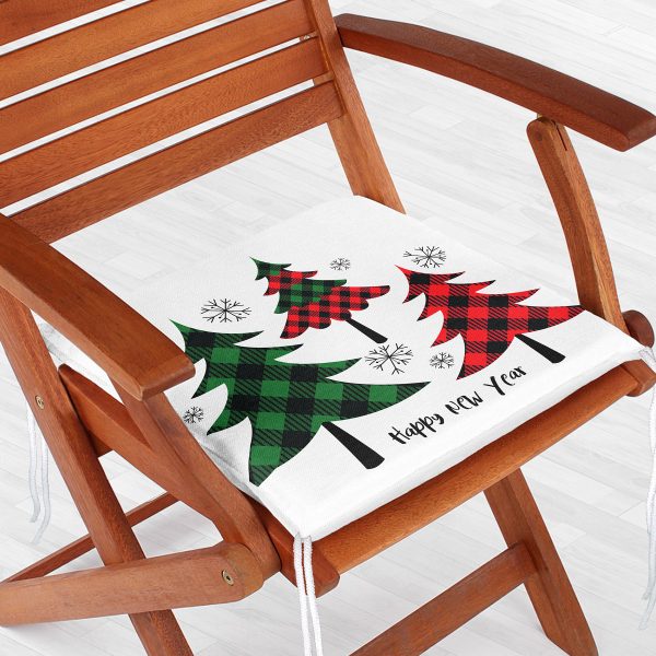 Beyaz Zemin Üzerinde Ekose Desenli Çam Ağacı Motifli Dijital Baskılı Modern Fermuarlı Sandalye Minderi