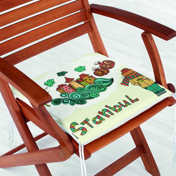 İstanbul Temalı Dijital Baskılı Fermuarlı Sandalye Minderi