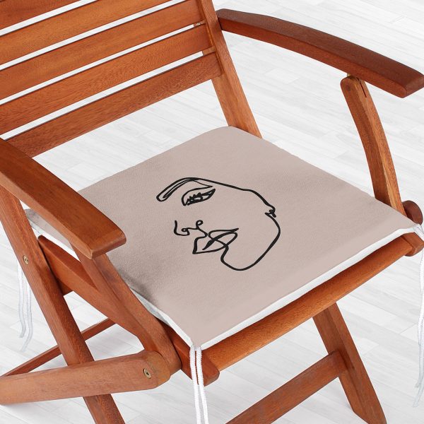 Beyaz Zemin Üzerinde Renkli Onedraw Çizimli Dijital Baskılı Modern Fermuarlı Sandalye Minderi