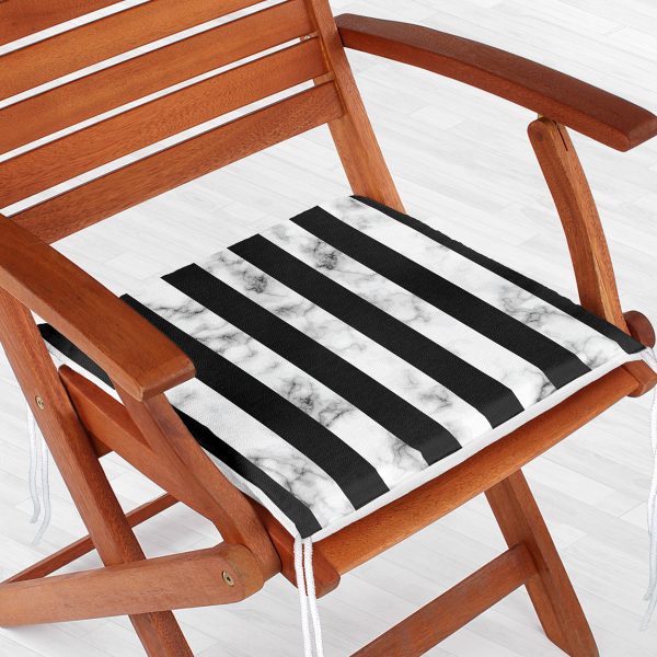 Mermer ve Siyah Çizgili Dijital Baskılı Fermuarlı Sandalye Minderi