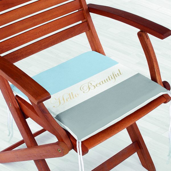 Hello Beautiful Mavi & Gri Dijital Baskılı Fermuarlı Sandalye Minderi
