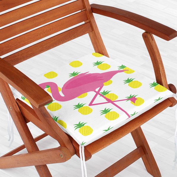 Ananaslar ve Flamingo Tasarımlı Dijital Baskılı Modern Fermuarlı Sandalye Minderi