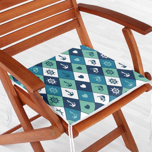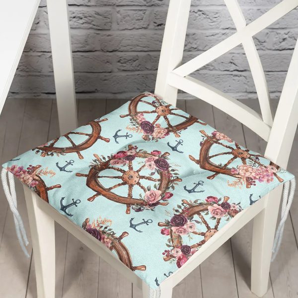 Denizci Temalı Çapa Dümen Gemi Figürlü Özel Tasarım Dijital Baskılı Modern Fermuarlı Sandalye Minderi