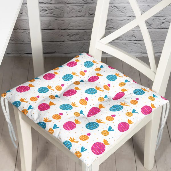 Realhomes Renkli Ananas Motifli Dijital Baskılı Modern Pofuduk Sandalye Minderi