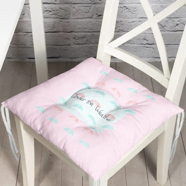 Pembe Zeminde Renkli Şemsiyeler Özel Tasarımlı Bebek Odası Pofuduk Sandalye Minderi