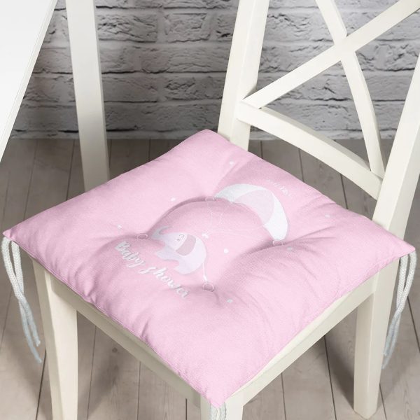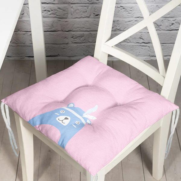 Pembe Zemin Baby Shower Temalı Ayıcık Desenli Dijital Baskılı Çocuk Odası Pofuduk Sandalye Minderi