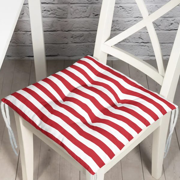 Beyaz Zemin Üzerinde Renkli Çizgili Dijital Baskılı Modern Pofuduk Sandalye Minderi