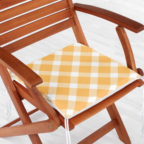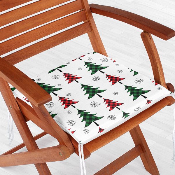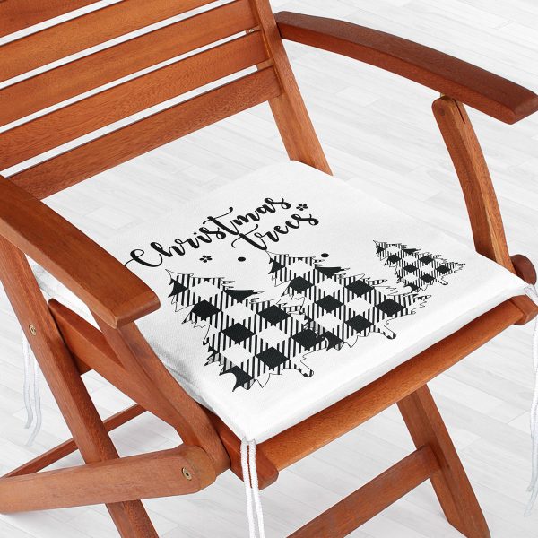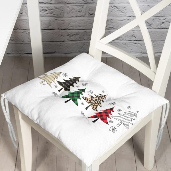 Beyaz Zemin Üzerinde Ekoseli Çam Ağacı Desenli Dijital Baskılı Modern Pofuduk Sandalye Minderi