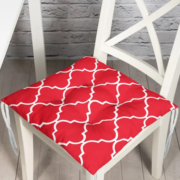 Kırmızı Ogea Desenli Dijital Baskılı Modern Pofuduk Sandalye Minderi