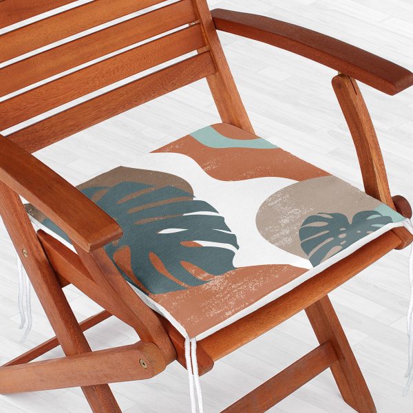 Renkli Zemin Üzerinde Yaprak Desenli Dijital Baskılı Modern Fermuarlı Sandalye Minderi