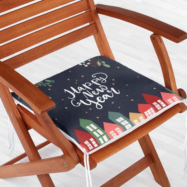Happy New Year Tasarımlı Dijital Baskılı Fermuarlı Sandalye Minderi
