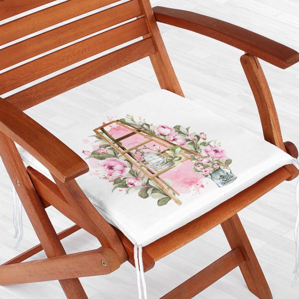 Çiçek Köşesi Özel Tasarım Dijital Baskılı Fermuarlı Sandalye Minderi