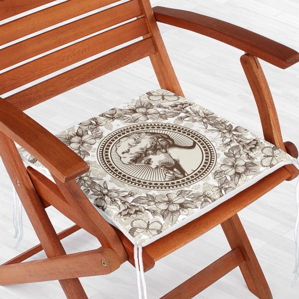 Karakalem Çiçek & Portre Desenli Dijital Baskılı Fermuarlı Sandalye Minderi