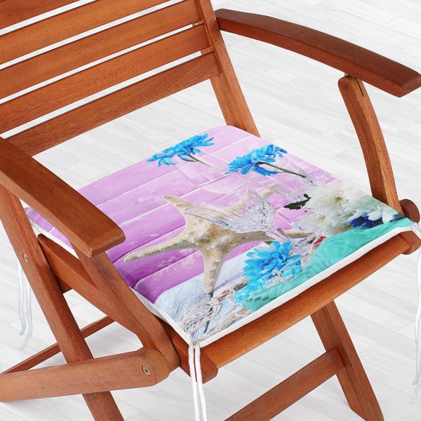 Özel Tasarım Deniz Yıldızı Motifli Dijital Baskılı Modern Fermuarlı Sandalye Minderi