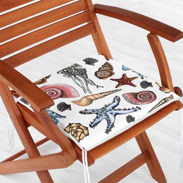 Deniz Yaşamı Özel Tasarımlı Dijital Baskılı Modern Fermuarlı Sandalye Minderi