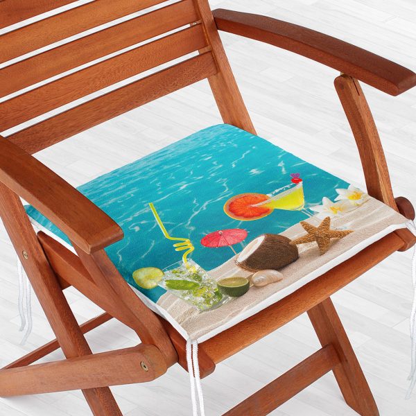Summer Deniz Temalı Dijital Baskılı Modern Fermuarlı Sandalye Minderi