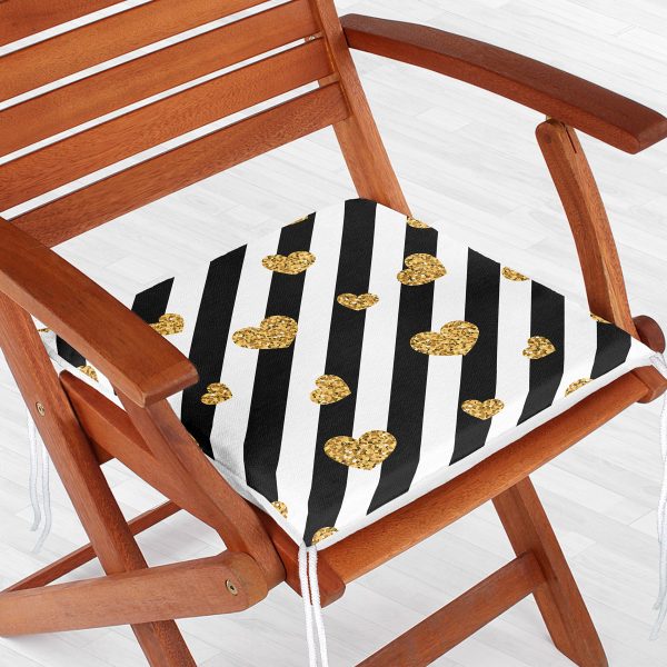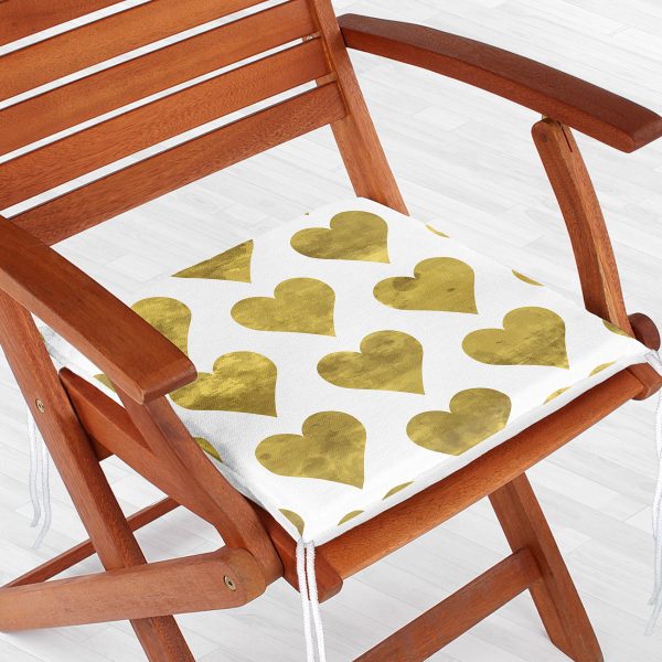 Beyaz Zeminli Gold Renkli Kalp Desenli Dijital Baskılı Modern Fermuarlı Sandalye Minderi