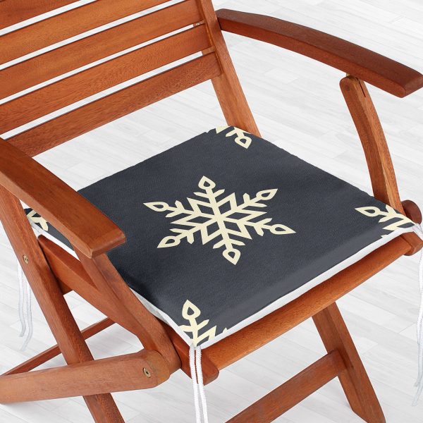 Beyaz Zeminde Gold Renkli Kar Tanesi Desenli Dijital Baskılı Modern Fermuarlı Sandalye Minderi