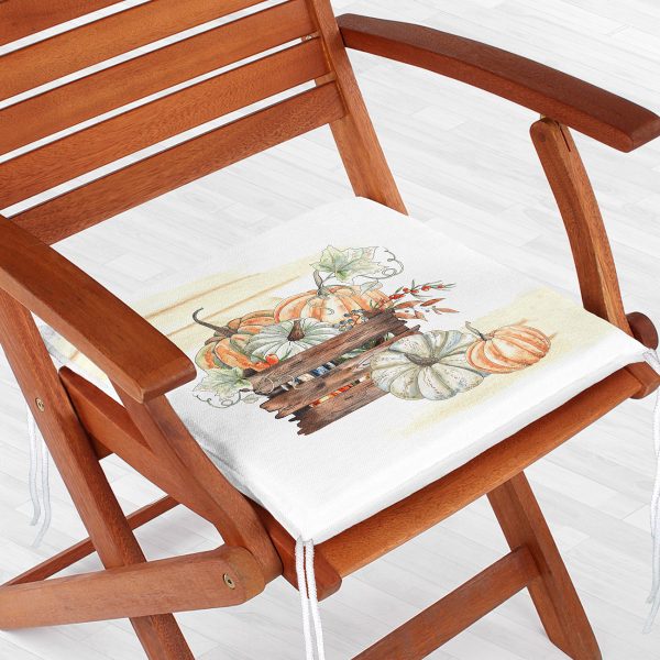 Beyaz Zemin Üzerinde Balkabağı Desenli Dijital Baskılı Modern Fermuarlı Sandalye Minderi