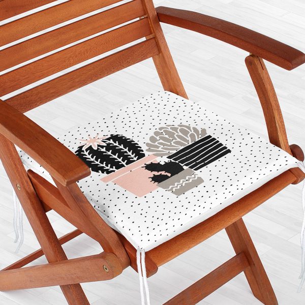 Beyaz Zemin Üzerinde Siyah Puantiyeli Kaktüs Desenli Dijital Baskılı Modern Fermuarlı Sandalye Minderi