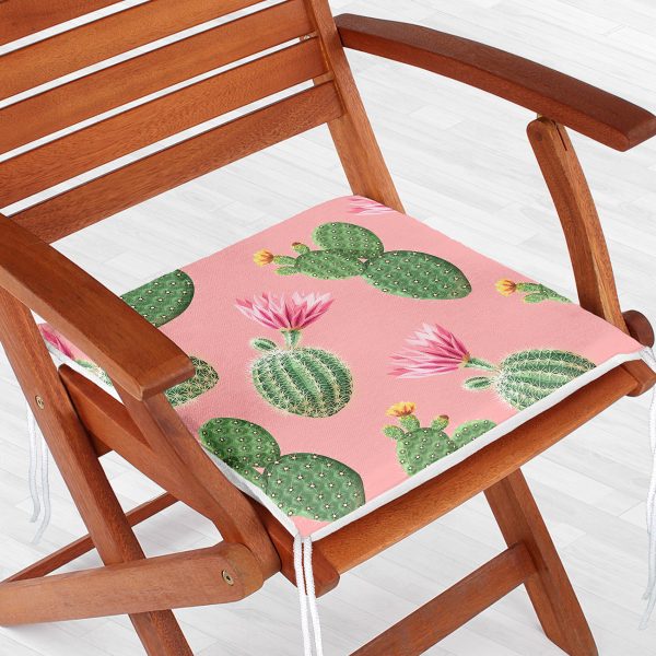 Renkli Zemin Üzerinde Kaktüs Desenli Dijital Baskılı Modern Fermuarlı Sandalye Minderi